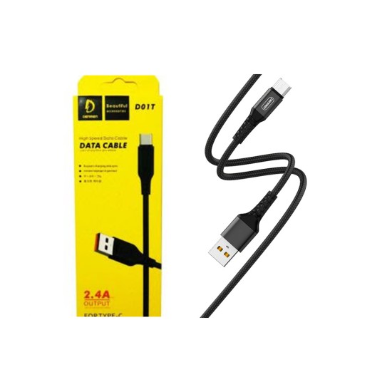 DENMEN FAST CHARGING CABLE D01T TYPE C 2.4A BLACK